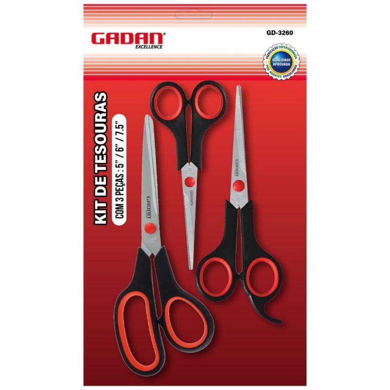 O KIT VEM COM 3 TESOURAS, 01 PEQUENA, 01 MÉDIA, 01 GRANDE