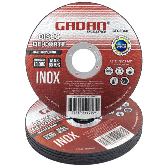 DISCO DE CORTE METAL "4.1/2" C/ 10UN - GADAN, PARA FERRO E ALUMÍNIO